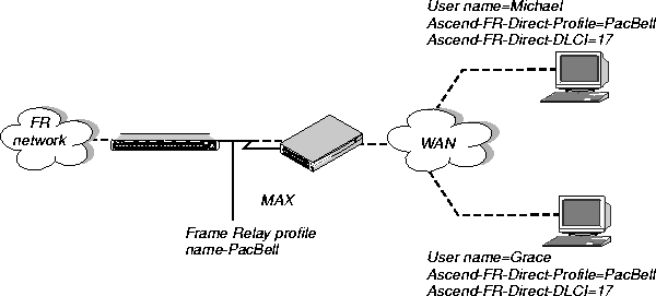 • To indicate the name of the Frame Relay profile the MAX uses when building the connection, set the Ascend-FR-Direct-Profile attribute.