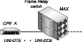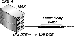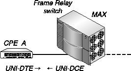 UNI is the interface between a user's CPE and a router or switch on the Frame Relay network. In this configuration, the user equipment is a DTE, and the MAX operates as a DCE. To the DTE, the MAX appears as a Frame Relay network endpoint (Figure 5-4).
